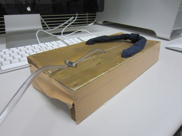 このように下駄の中心部に穴を開けてチューブを通しました。
